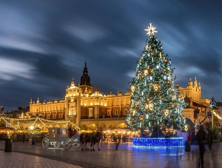 En pleno corazón de la Plaza del Mercado, el mercadillo navideño de Cracovia convierte una de las plazas medievales más bellas de Europa en un escenario lleno de magia invernal. Entre luces cálidas, puestos de madera y el aroma de pierogi, golosinas tradicionales y vino caliente, más de un centenar de casetas ofrecen artesanía polaca, adornos hechos a mano y delicias típicas. Con coros navideños, talleres tradicionales y desfiles folclóricos, Cracovia celebra la Navidad con un encanto único y acogedor. Sumérgete en el espíritu festivo de esta joya polaca y descubre por qué su mercado es uno de los más entrañables del Viejo Continente.