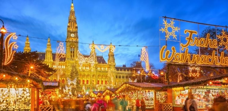 Viena se viste de gala en Navidad y convierte sus plazas imperiales en escenarios llenos de luz, música y tradición. Con más de una decena de mercados navideños repartidos por la ciudad, la capital austríaca deslumbra con su mezcla de elegancia, historia y ambiente festivo. Frente al Ayuntamiento, el Christkindlmarkt reúne decenas de casetas donde saborear Glühwein, dulces vieneses y especialidades locales, mientras los árboles iluminados y los villancicos crean una atmósfera de cuento. Desde el Palacio de Schönbrunn hasta la plaza de Maria-Theresien, Viena celebra la Navidad con un estilo único, invitando a disfrutar de su magia imperial bajo las luces invernales.